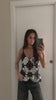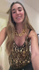 Blusa regata transparente em tule com bordados luxuosos em paetês e miçangas nas cores dourado, preto e prata. O modelo possui decote em “V” e acabamento levemente solto, que valoriza o movimento e o brilho da peça. O design artesanal cria um visual marcante e sofisticado, ideal para produções noturnas e eventos especiais.